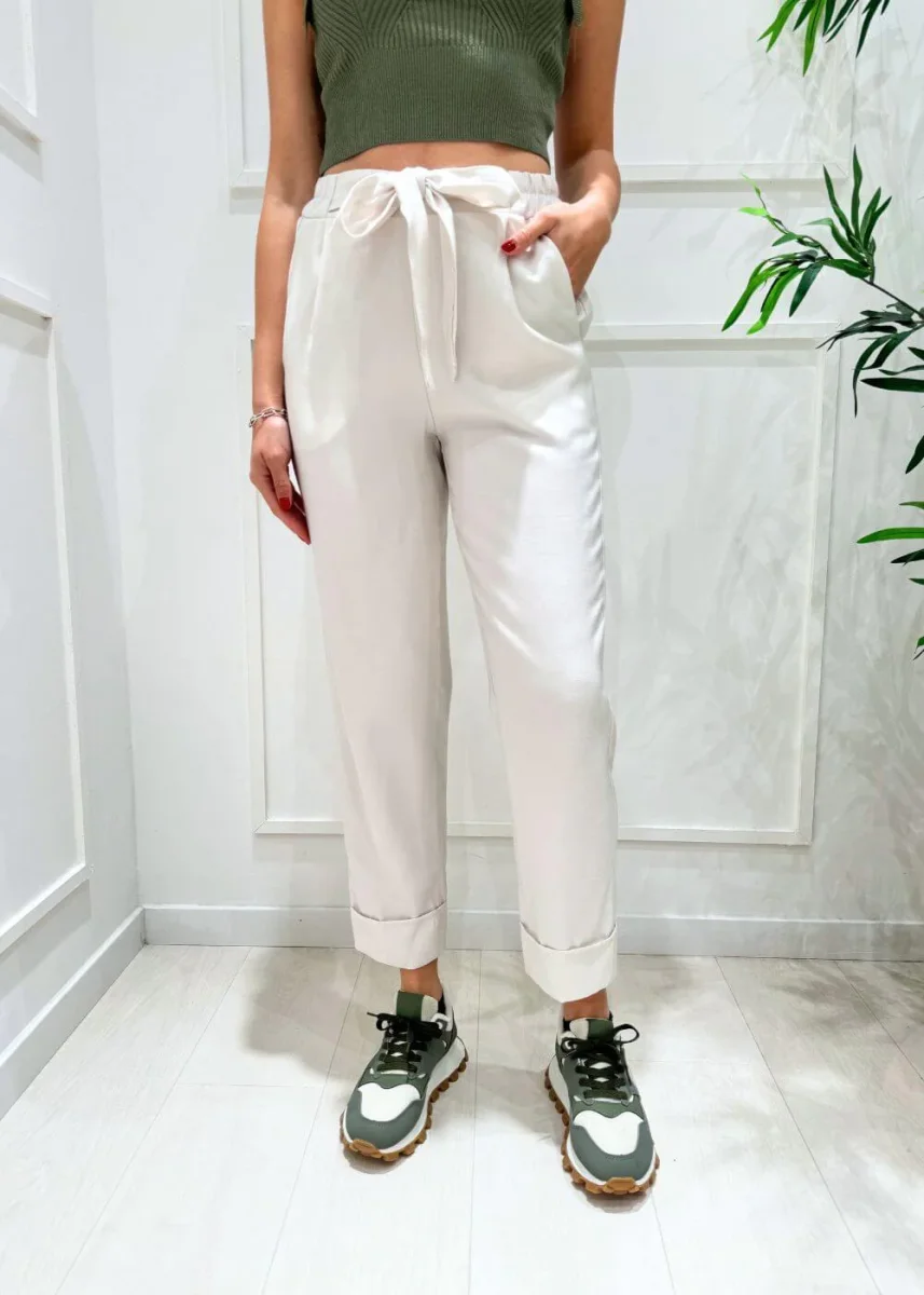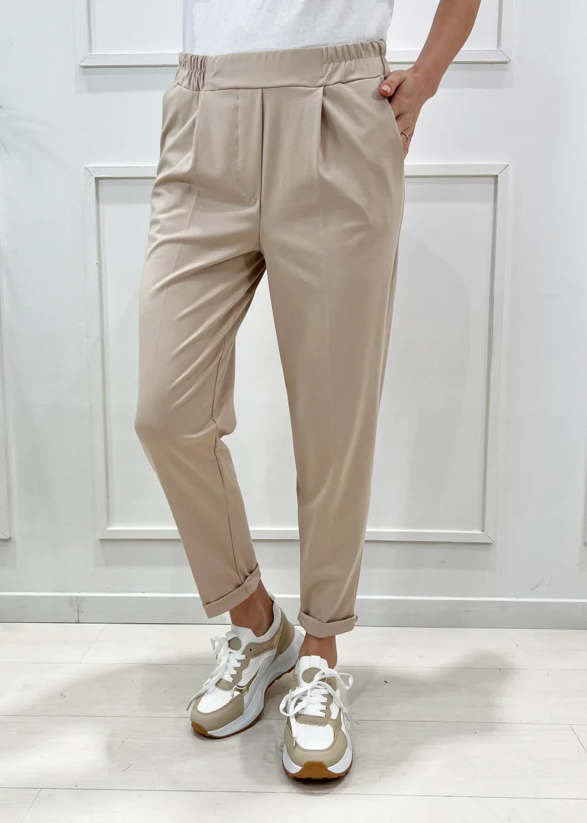 KERSO – Pantalone Elastico/Risvolto – BEIGE