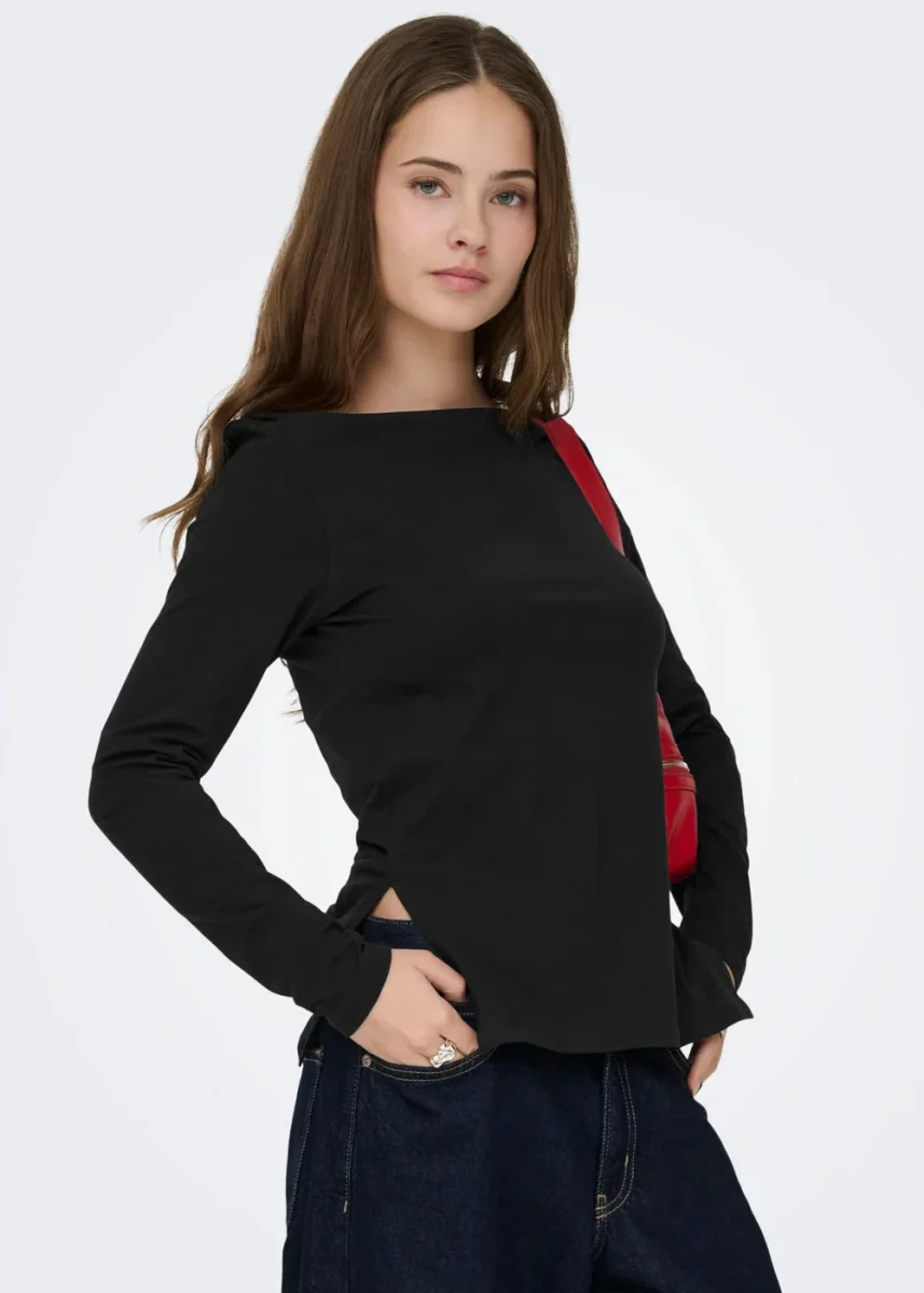 ONLY – T-Shirt scollo barca – NERO