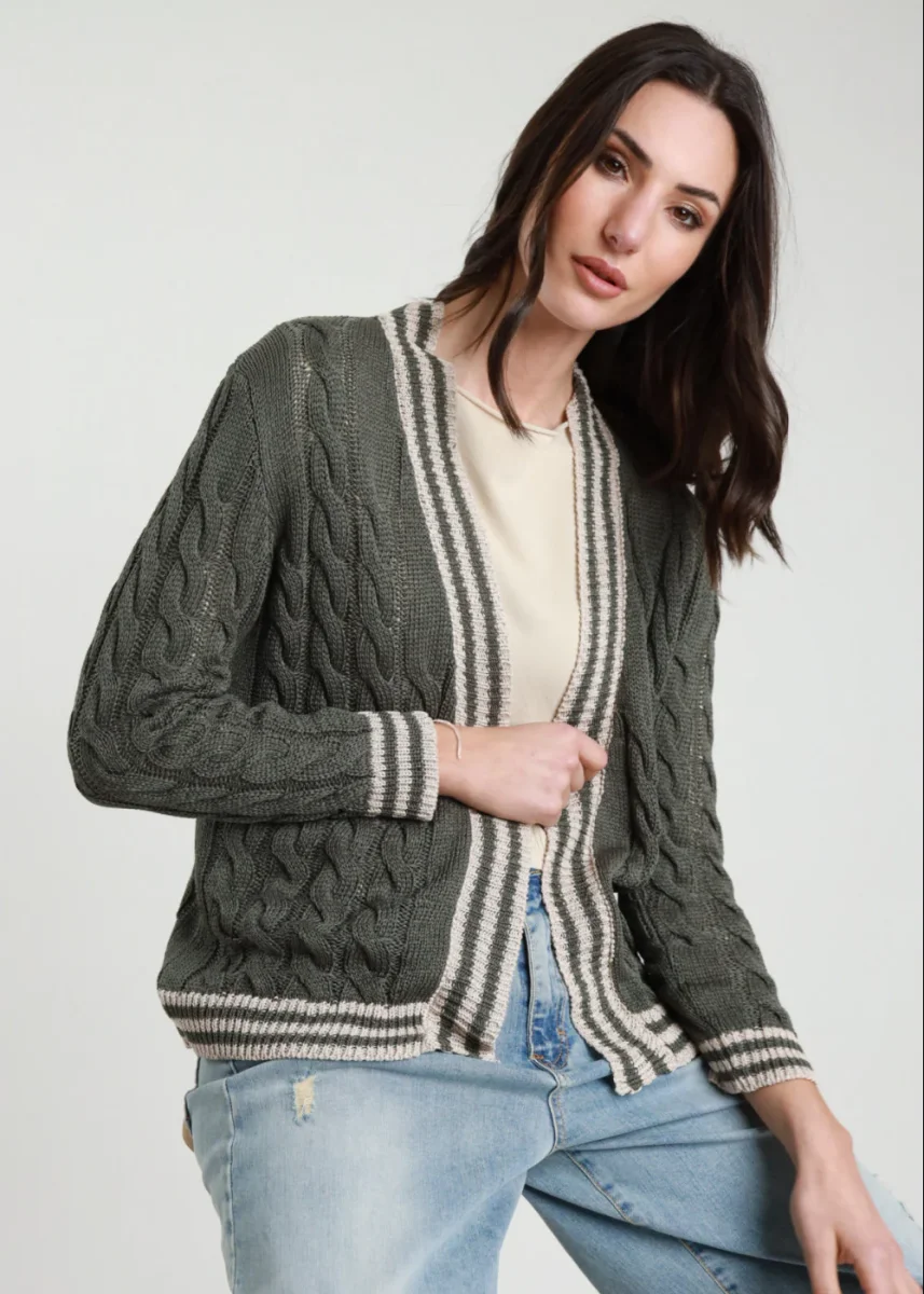 SUSY MIX – Cardigan Trecce – VERDE MILITARE