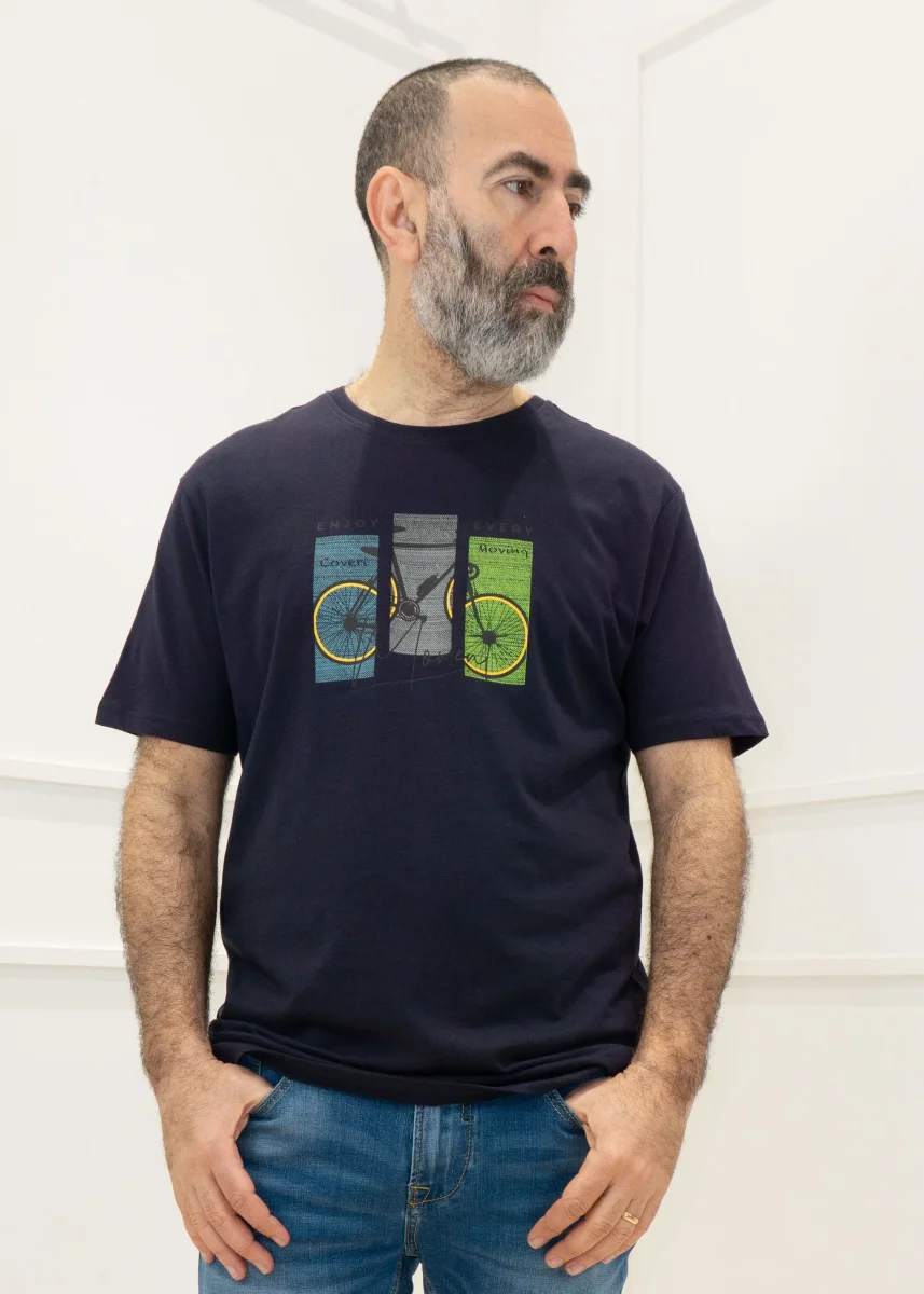 Coveri – T-Shirt m/m stampa bicicletta – BLU