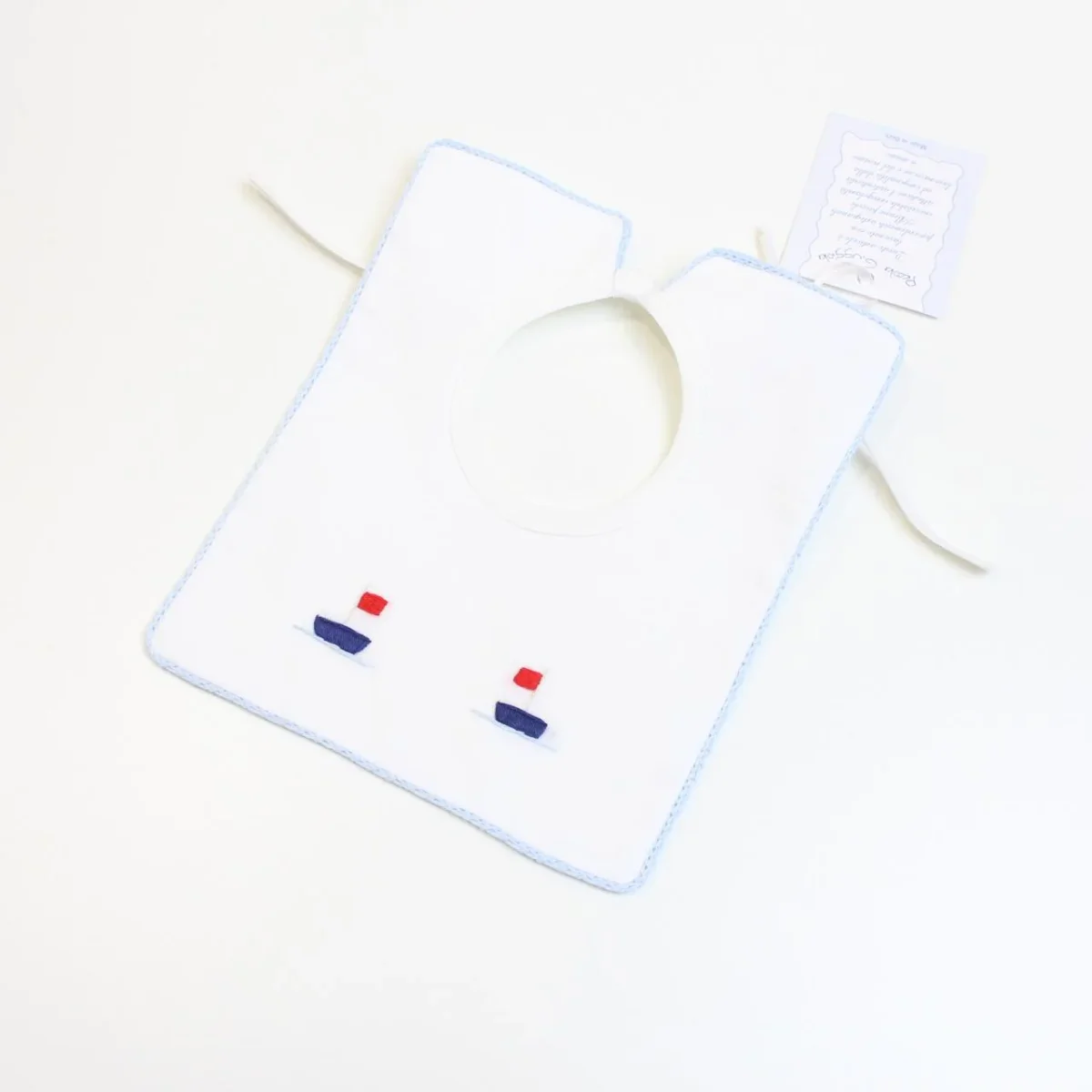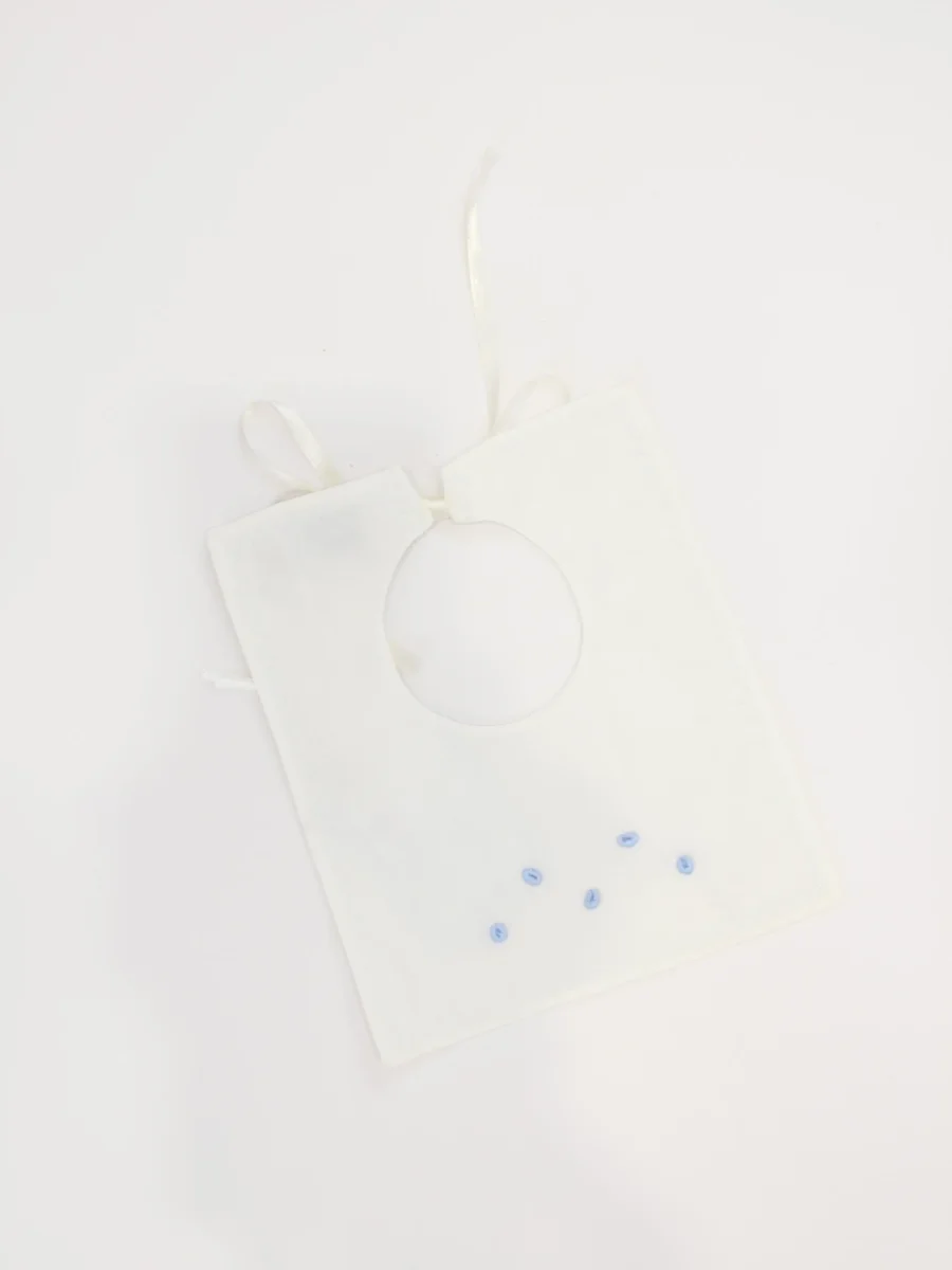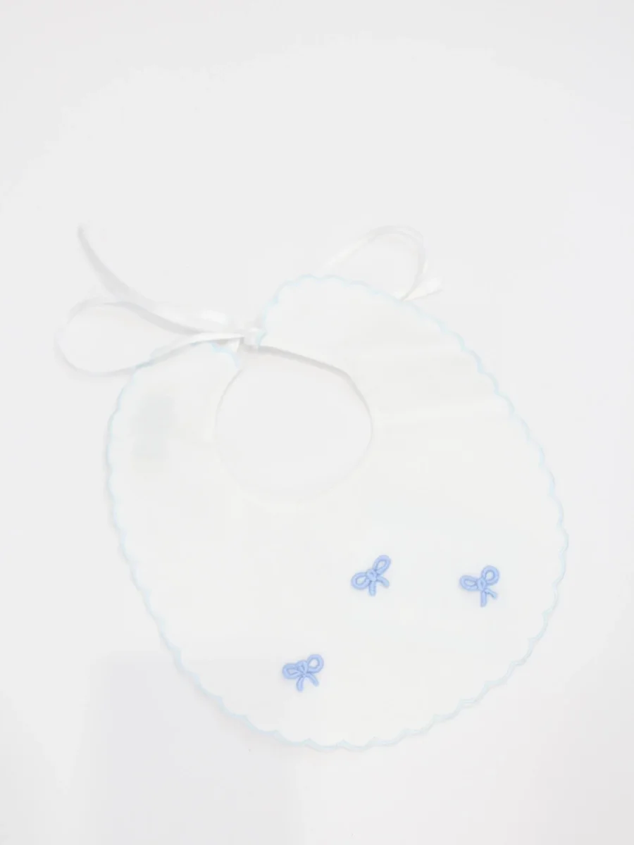 bavetta squadrata con fiocco ricamato in cotone