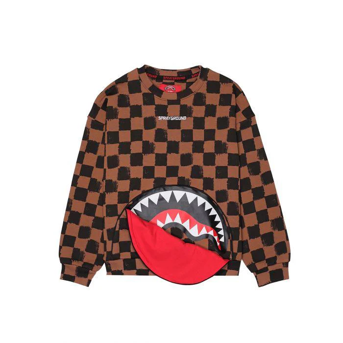 felpa a scacchi con zip bocca