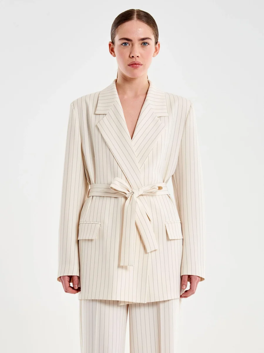 blazer gessato con cintura