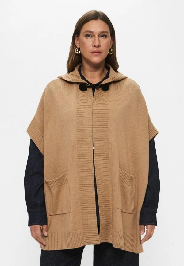 poncho con cappuccio e tasche