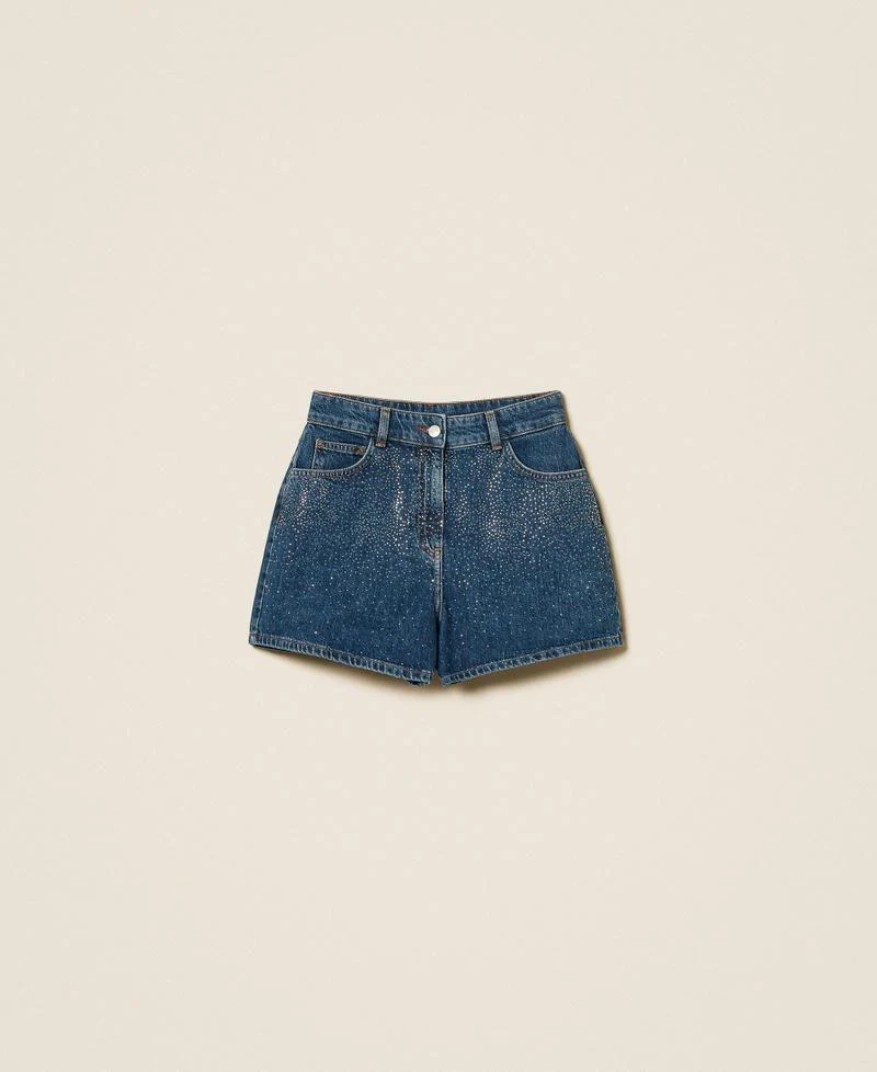 shorts in denim con strass