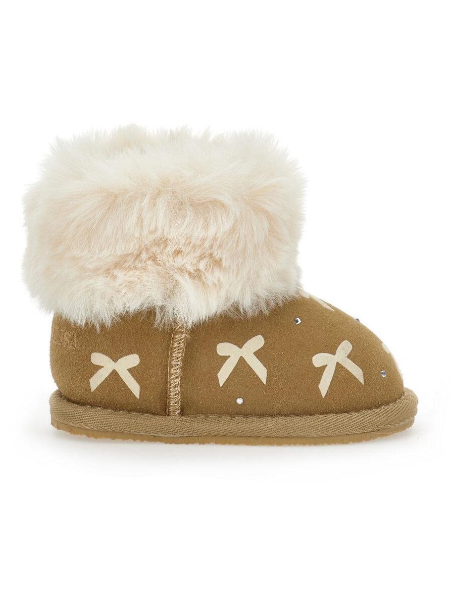 stivaletto con strass e fiocchi