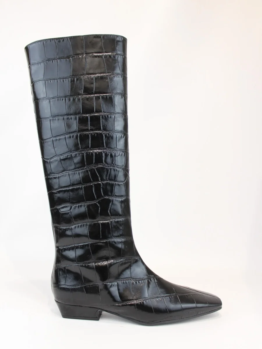stivale in pelle liscia con V
