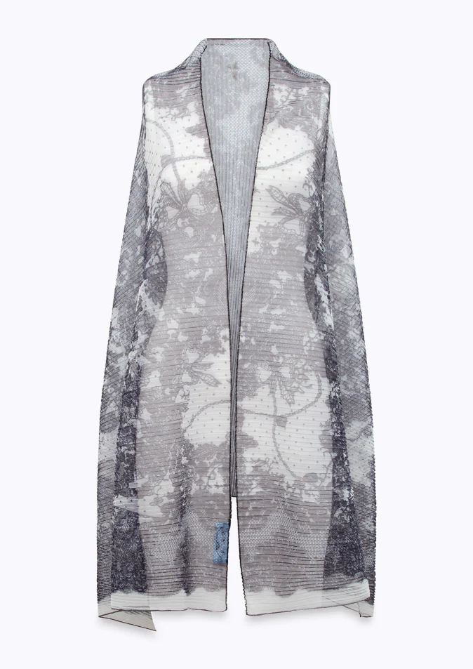stola in tulle plissè a stampa pizzo