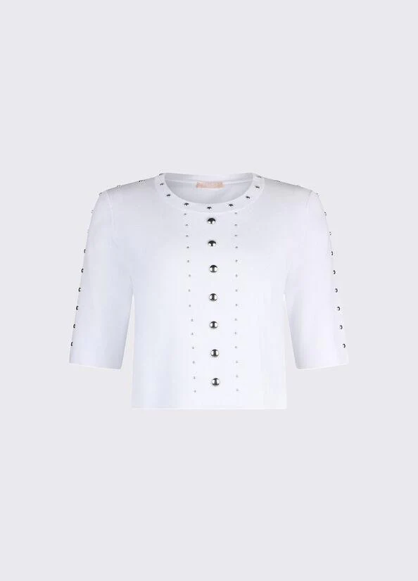 t-shirt in maglia con borchie
