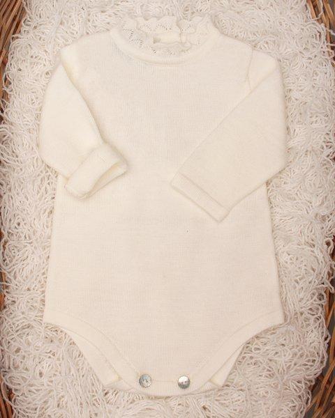 Body neonato Story Loris, colore bianco avorio, maniche corte, girocollo e chiusura con clip tra le gambe