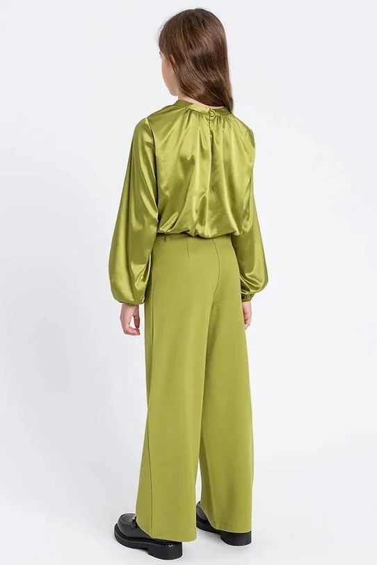 Pantaloni in tessuto fine elasticizzato, dettaglio con sei bottoni logati in contrasto, colore verde