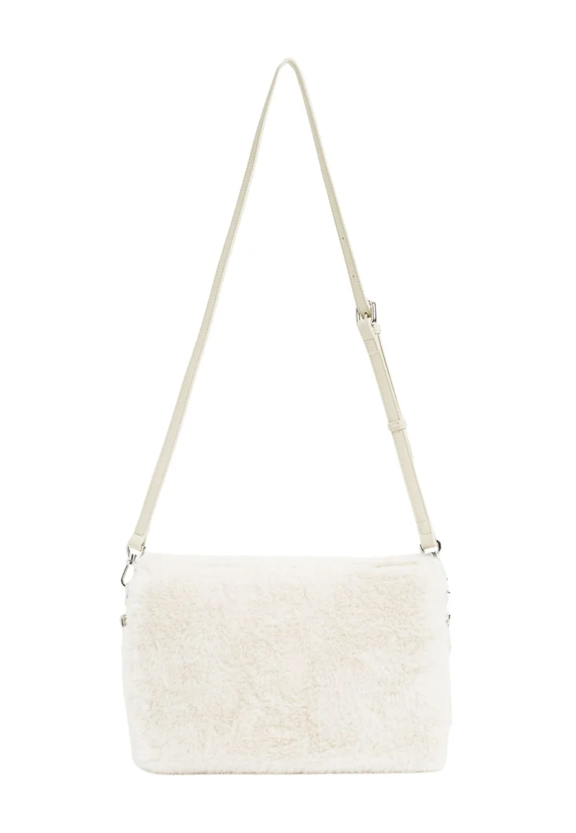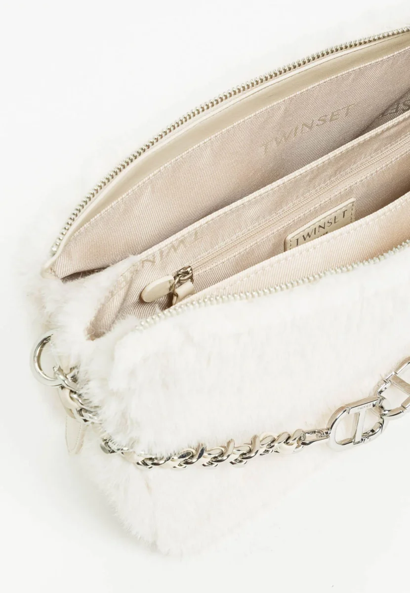 Borsa clutch Twinset, modello in ecopelliccia nera con zip, tracolla removibile e regolabile in ecopelle, colore bianco