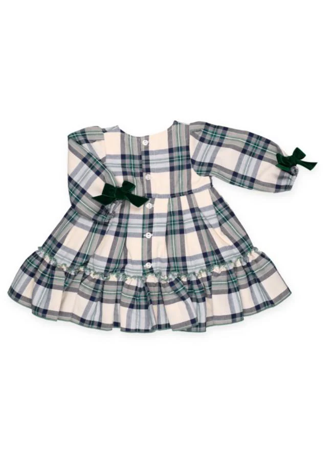 Abito Juliana, modello con quadretti e applicazioni fiocci in contrasto, colore verde