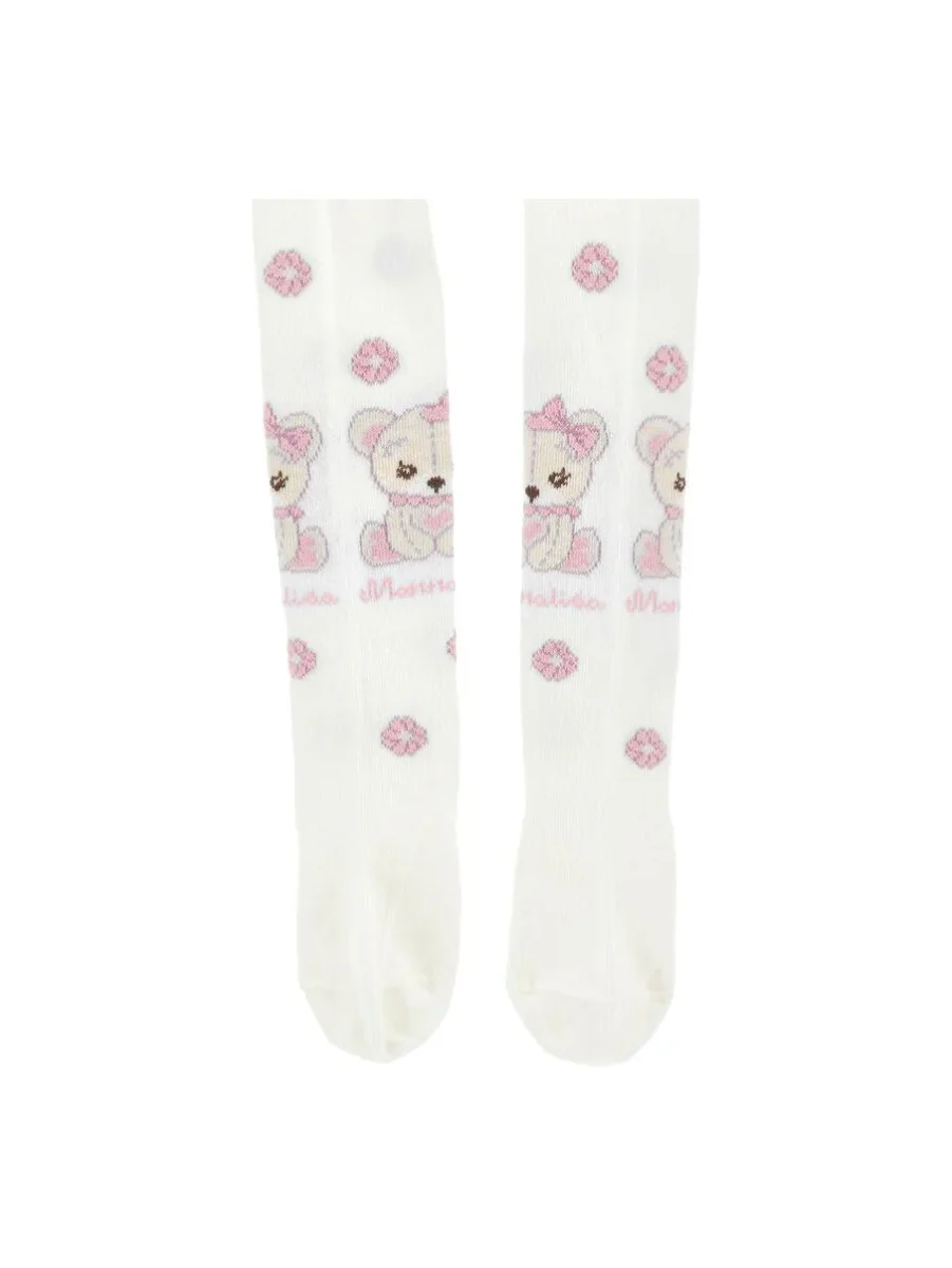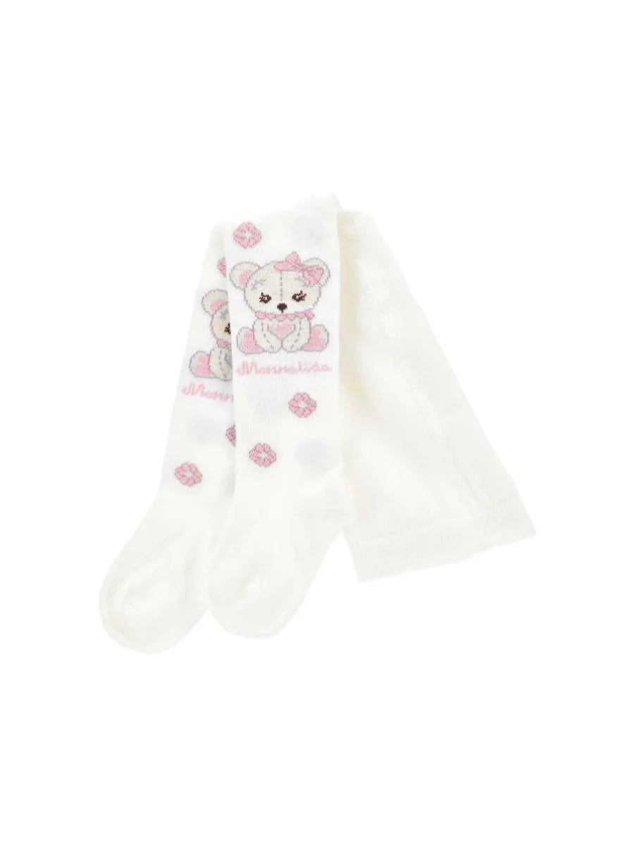Collant in tessuto jacquard, adorabile stampa orsetto con dettagli, colore bianco e rosa
