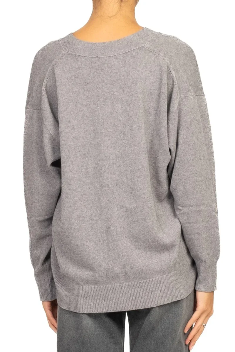 Cardigan Vicolo donna, modello con ampio scollo a V, bottoni oro in contrasto, colore grigio