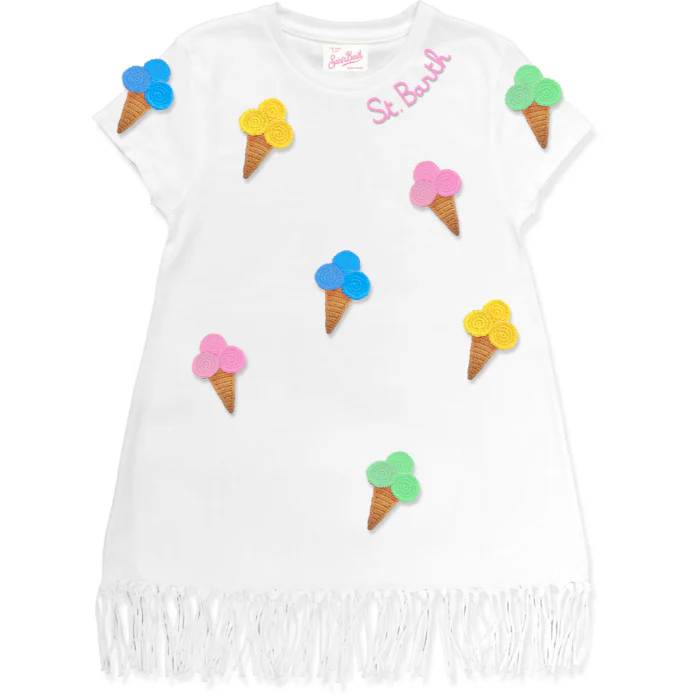 Abito abbey Mc2 Saint Barth, modello in cotone girocollo, patch logo gelato in contrasto, colore bianco