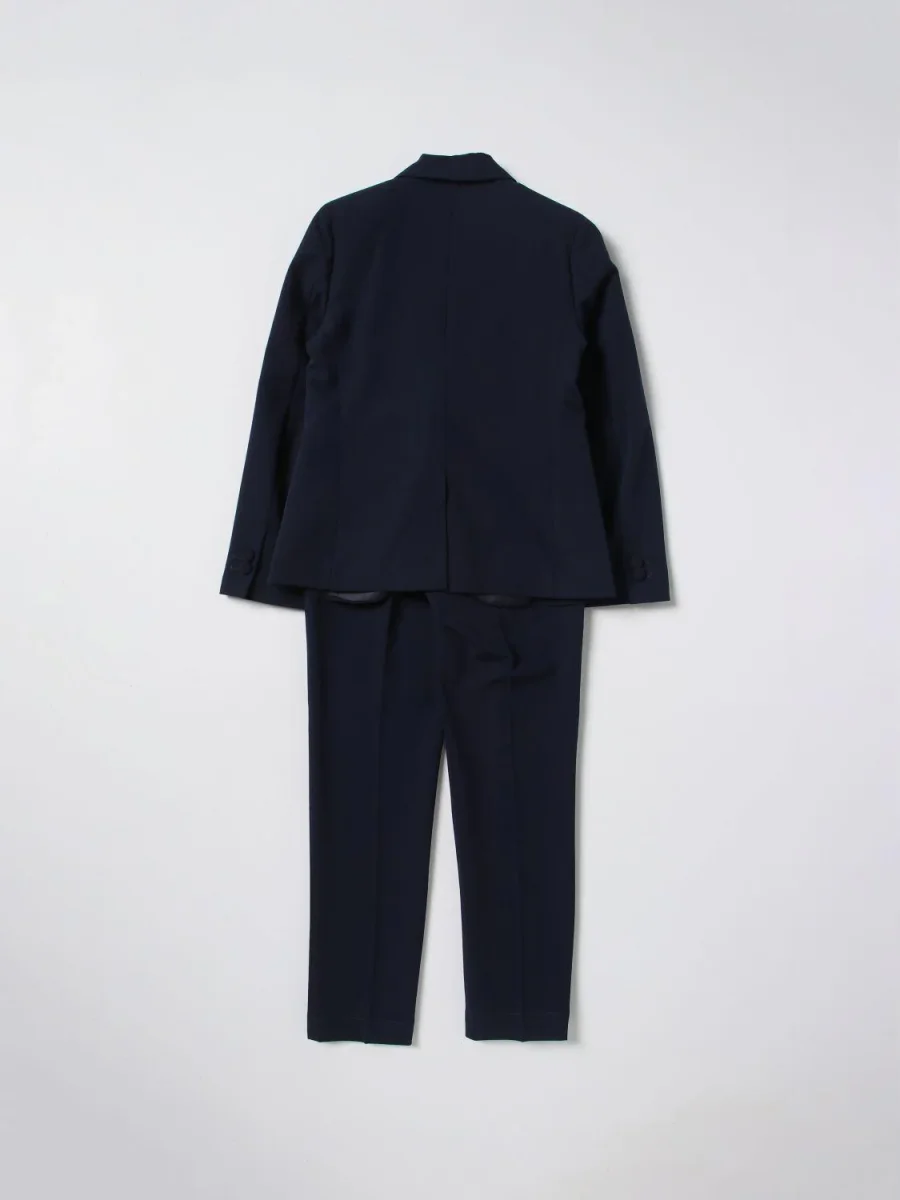 Abito Manuel Ritz Kids, composto da giacca con tasche a filo, revers lucidi e taschino sul petto a filo, chiusura con bottone, spacco centrale, pantalone con gamba dritta, piega frontale
