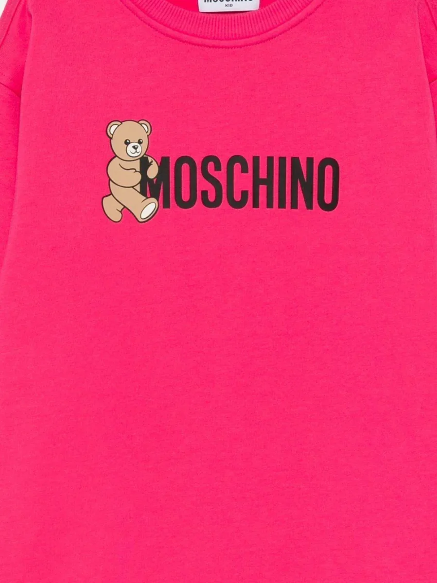 Abito felpa Moschino Kids, modello girocollo e maniche lunghe, dettaglio orsetto in contrasto sul davanti, colore fucsia