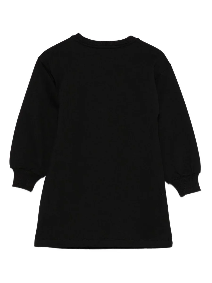 Abito felpa Moschino Kids, modello girocollo e maniche lunghe, dettaglio orsetto in contrasto sul davanti, colore nero