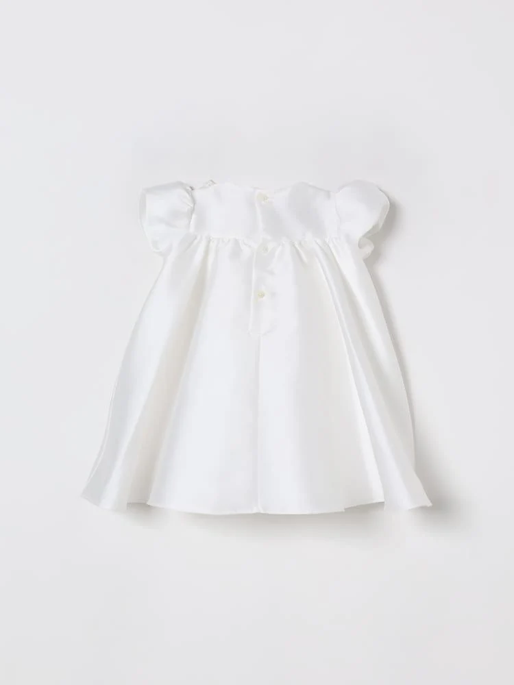 Abito in raso con fiocco La Stupenderia, modello girocollo, chiusura posteriore con zip a scomparsa, colore bianco