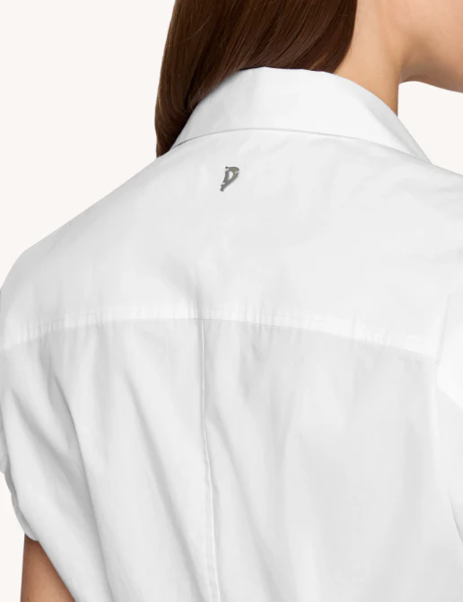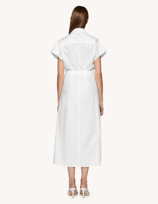 Abito longuette Dondup donna, modello a maniche corte con abbottonatura davanti e cintura in vita, realizzato in popeline di cotone, colore bianco