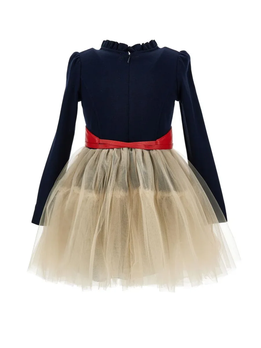 Abito Minnie Disney, modello con gonna in tulle, banda in vita con fiocco, apertura posteriore