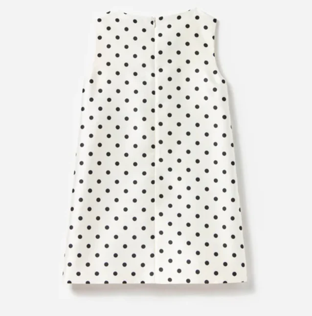 Abito in taffettà bambina, modello con chiusura bottoni sul davanti, dettagli smerlati, tasche funzionali, colore bianco
