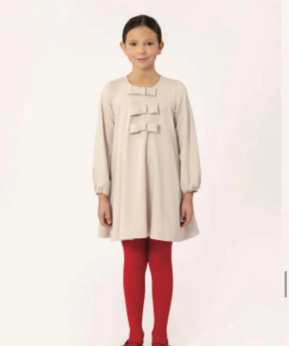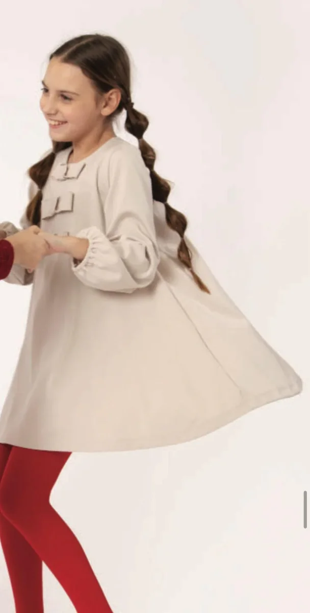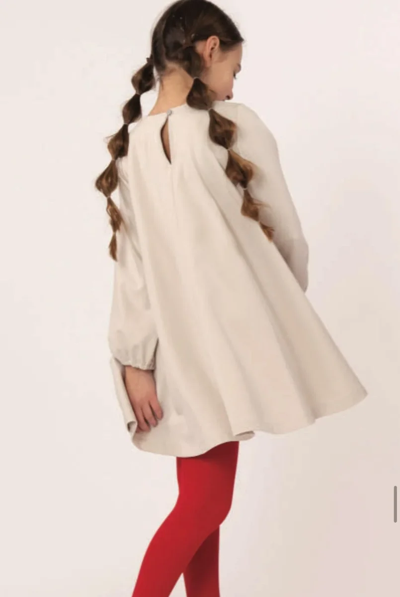 Abito texas Piccola Ludo, modello girocollo, applicazione in tono, colore crema