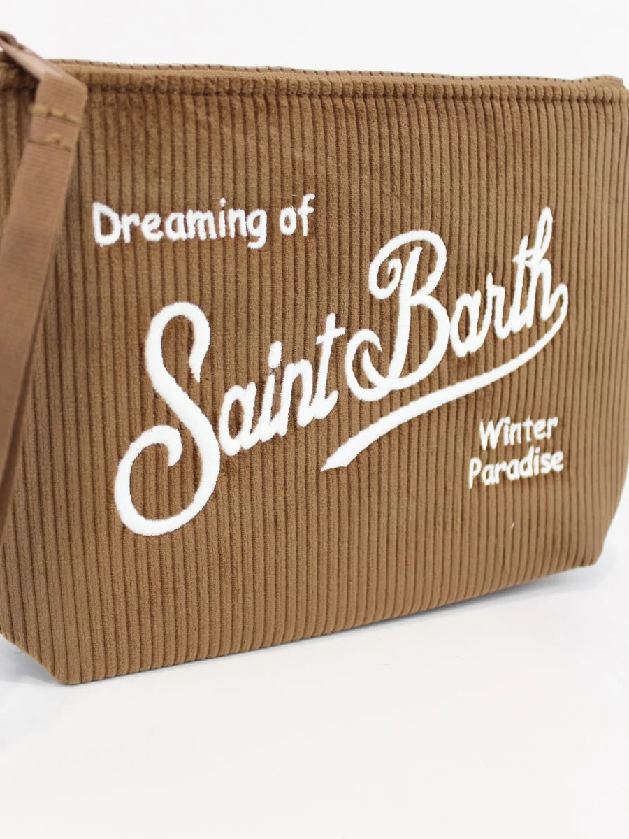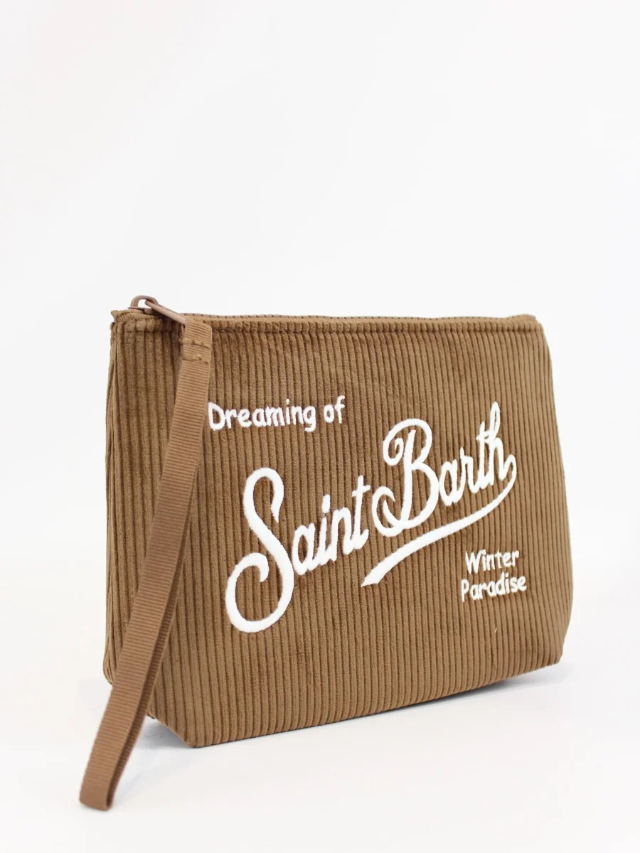 Pochette Mc2 Saint Barth Corduroy, modello effetto a righe con logo in contrasto al centro, polsiera fissa, colore beige