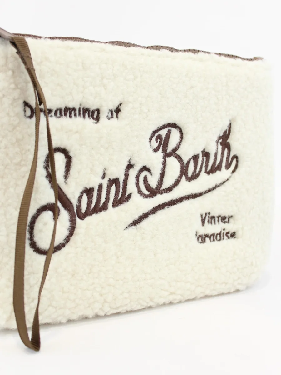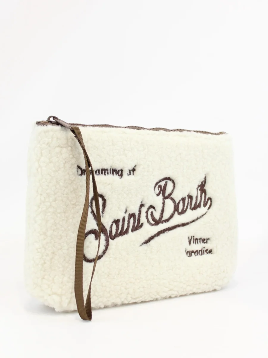 Pochette Teddy Aline Mc2 Saint Barth, modello effetto orsetto colore bianco, polsiera fissa, logo in contrasto