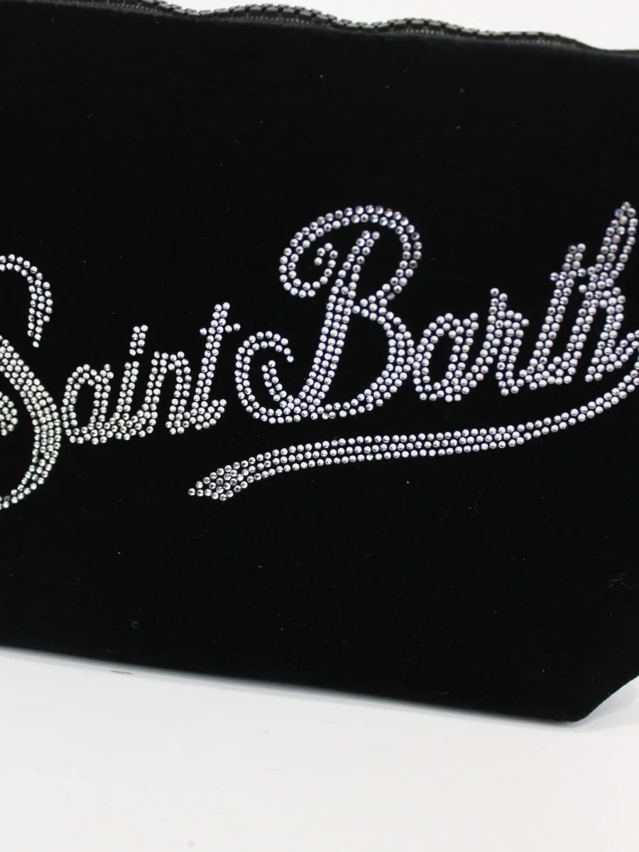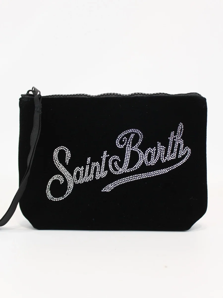 Borsa Aline Velvet Mc2 Saint Barth, modello con polsiera fissa, logo strass in contrasto, colore nero