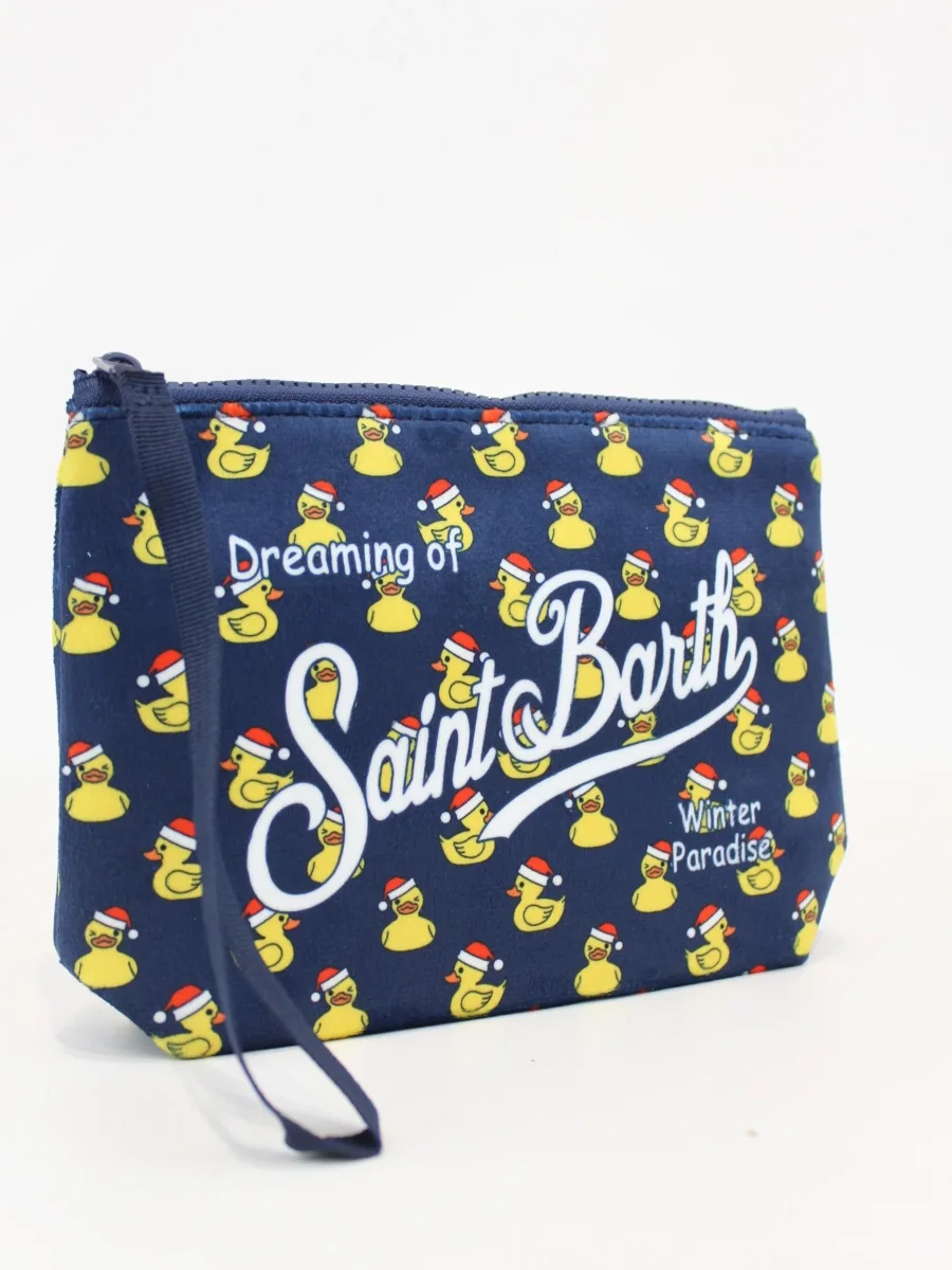 Borsa pochette Mc2 Saint Barth, modello con stampa paperelle natale in contrasto, logo al centro