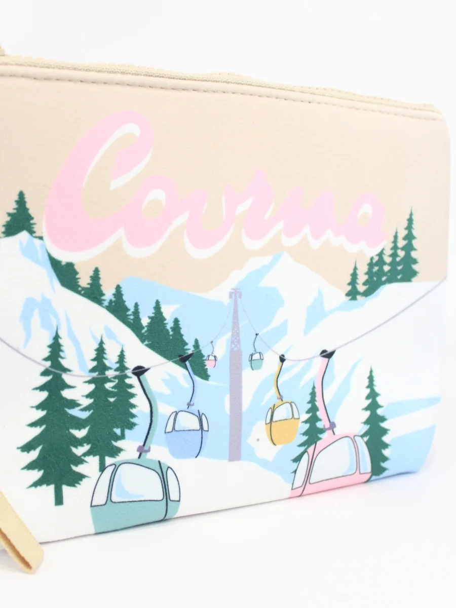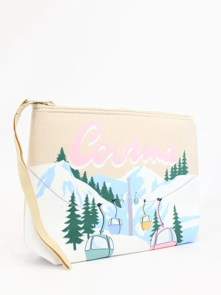 Pochette Aline cortina Mc2 Saint Barth, modello con zip, polsiera fissa e stampa cortina e piste