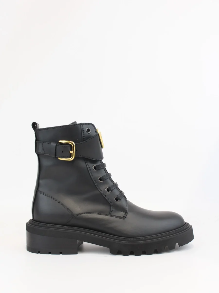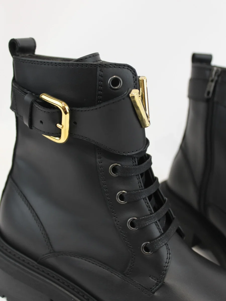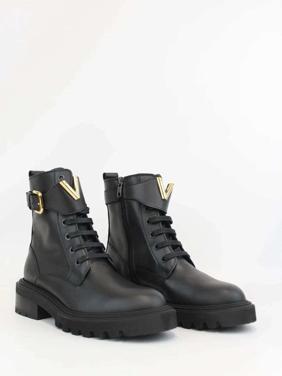 Anfibio in pelle Via Roma 15, modello con suola in gomma, chiusura lacci e zip laterale, cinturino e V in contrasto