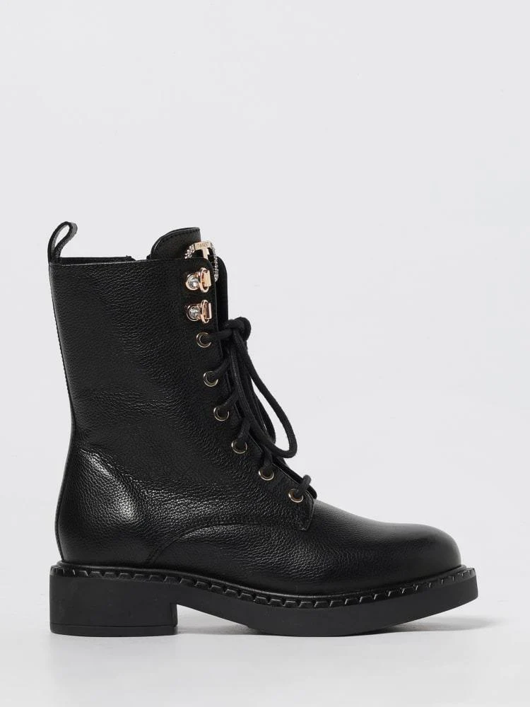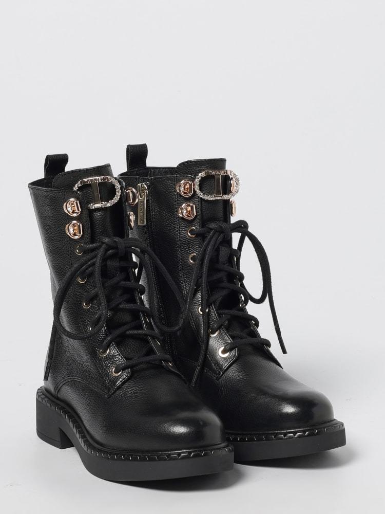 Anfibio in pelle Twinset Girl, modello con suola alta in gomma, chiusura con laccio, logo in contrasto, colore nero