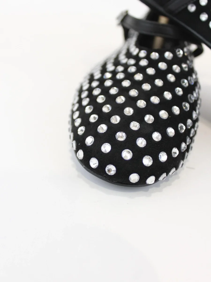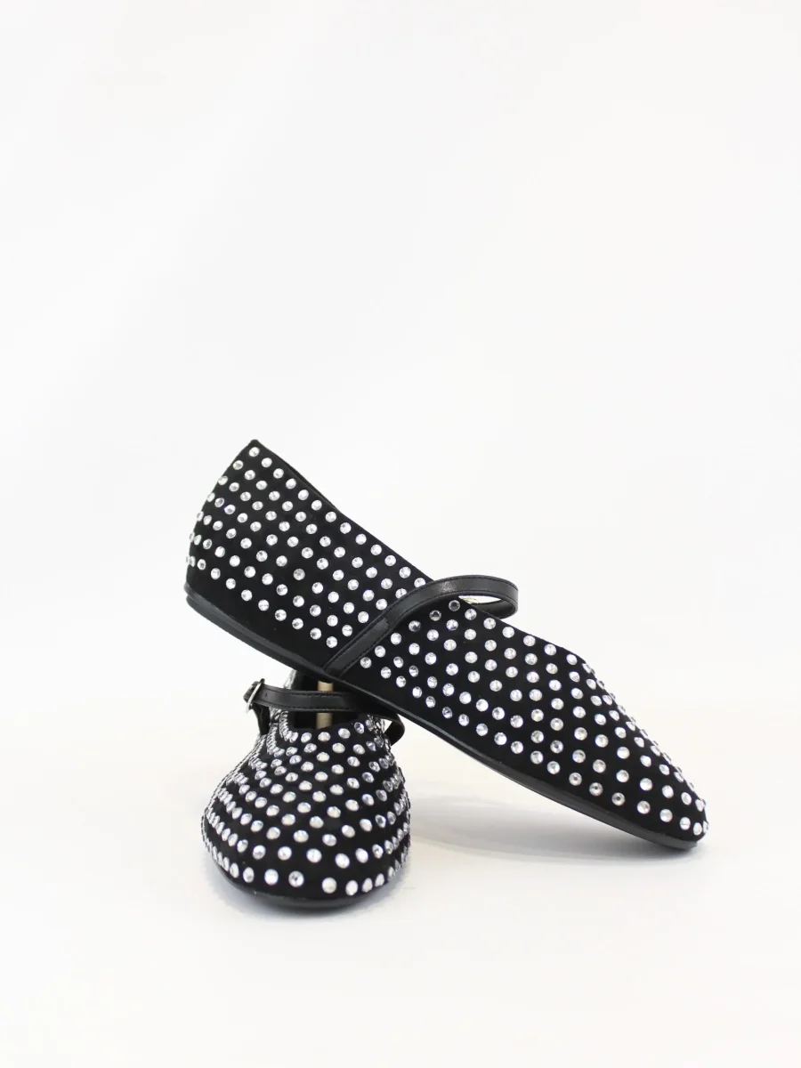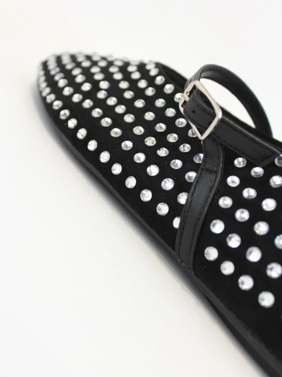 Ballerina Ovyè, modello basso con chiusura cinturino, applicazione gioielli applicati, colore nero