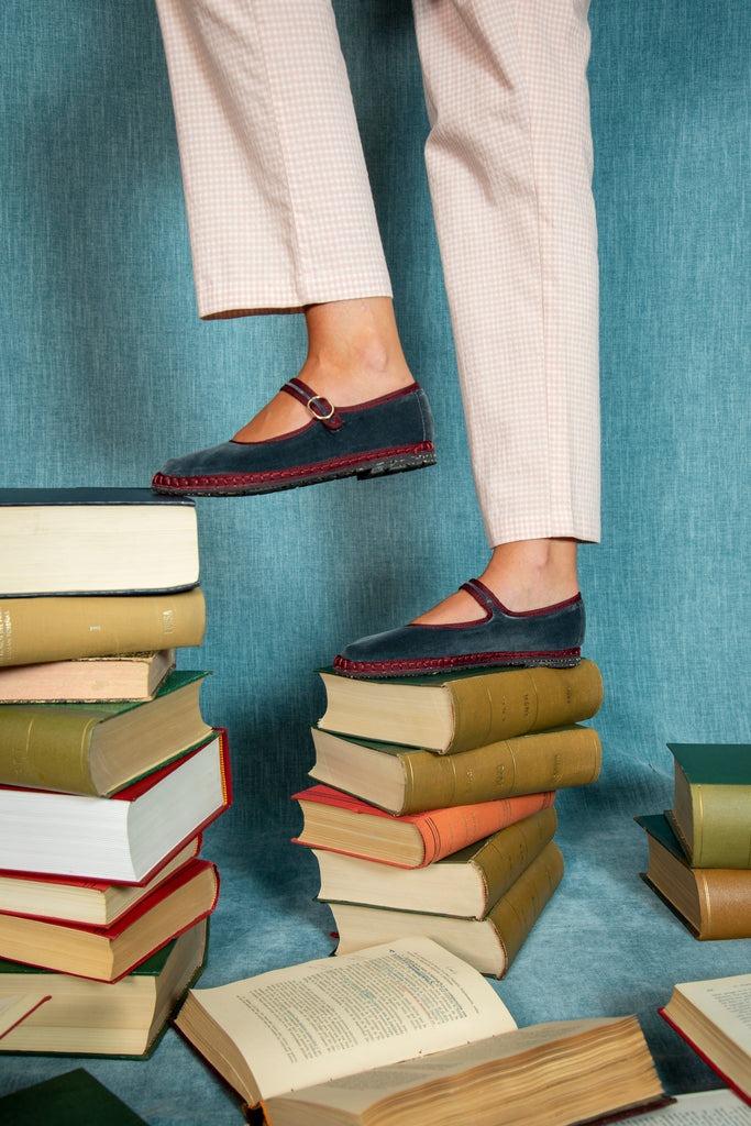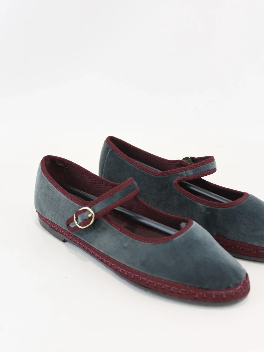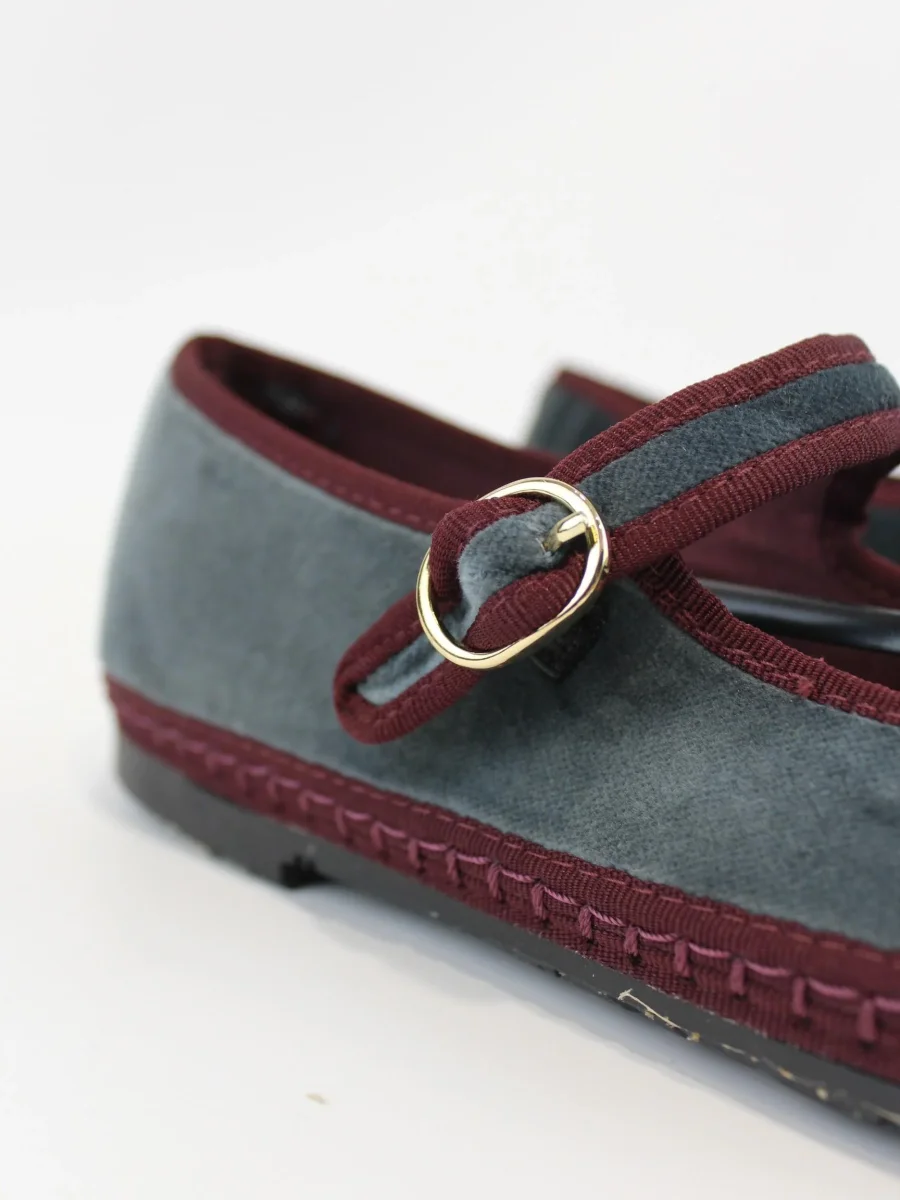 Ballerina Georgina in velluto, profili in contrasto e chiusura con fibbia, suola realizzata in gomma