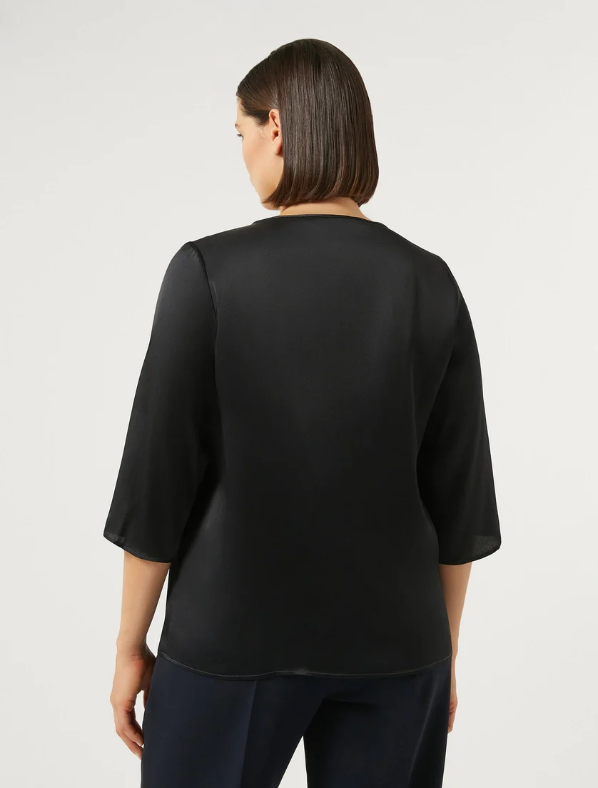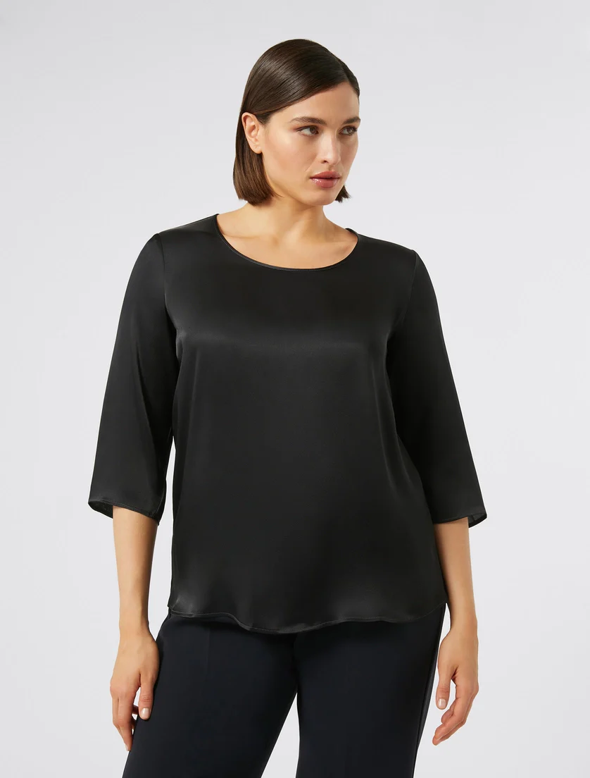 Blusa in misto seta donna, linea dritta, collo rotondo, maniche a tre quarti e sfoderata, colore blu notte