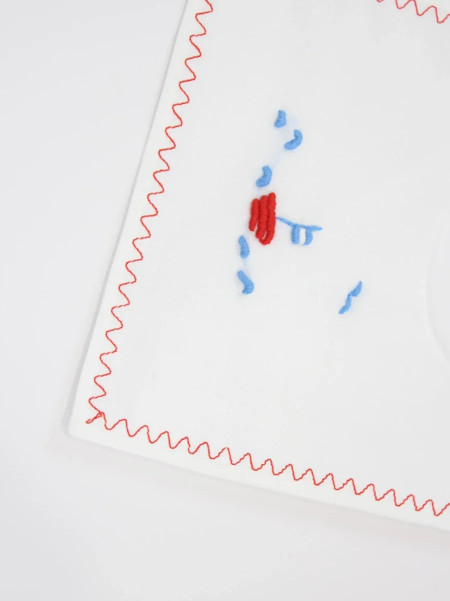 Bavetta con intarsi Piccola Giuggiola, modello squadrato con dettagli in contrasto