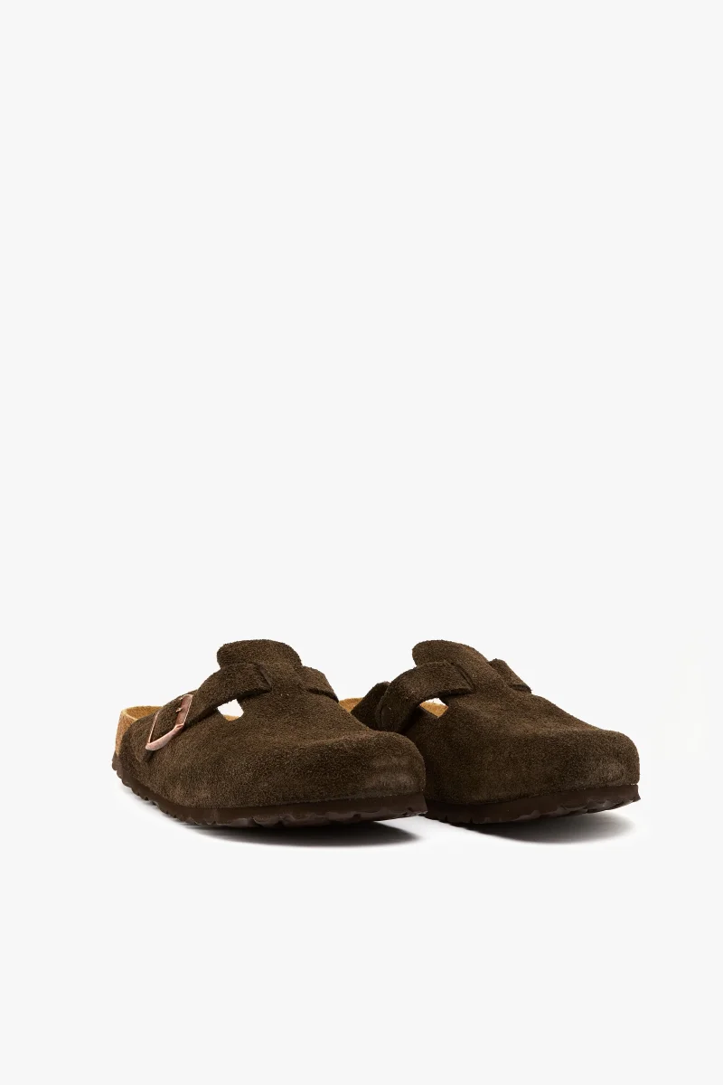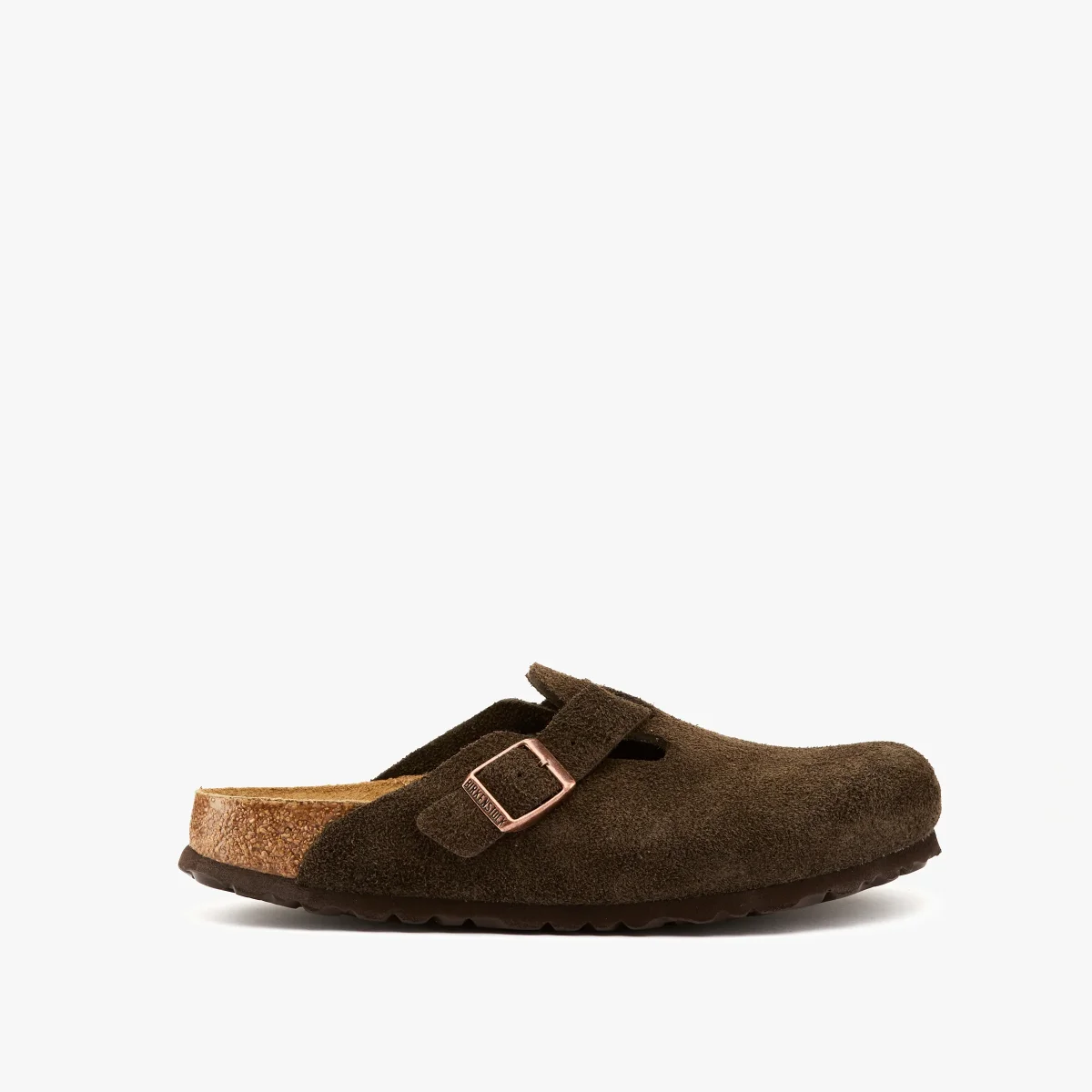 Ciabatta in pelle scamosciata mocca, plantare morbido