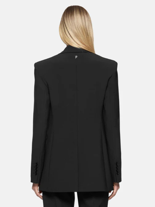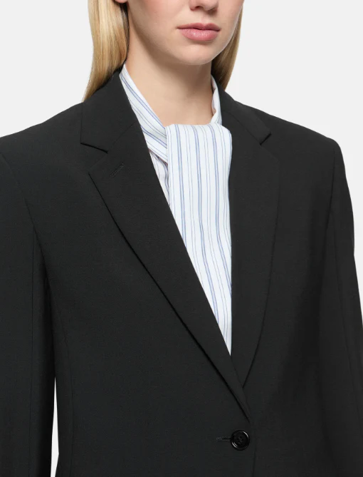 Blazer monopetto regular donna, modello ad un bottone con tasche a doppio filetto, tela di lana bistretch, colore nero