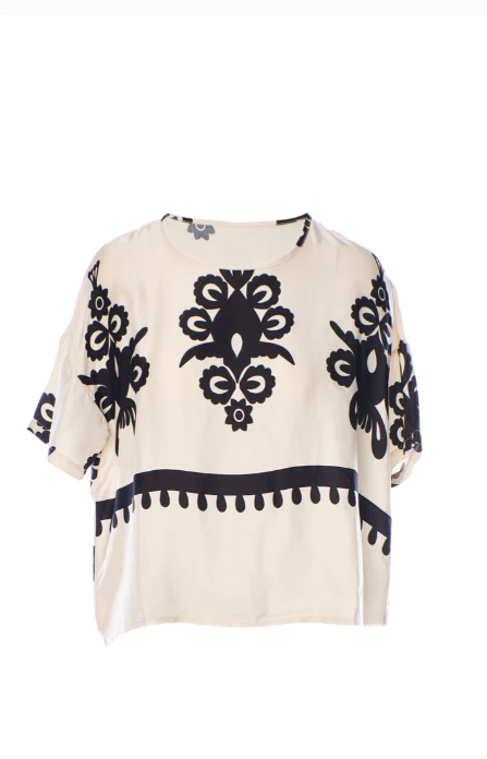 Blusa con stampa Anonyme donna, modello girocollo con maniche ampie e stampa in contrasto