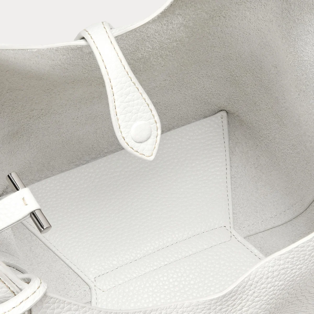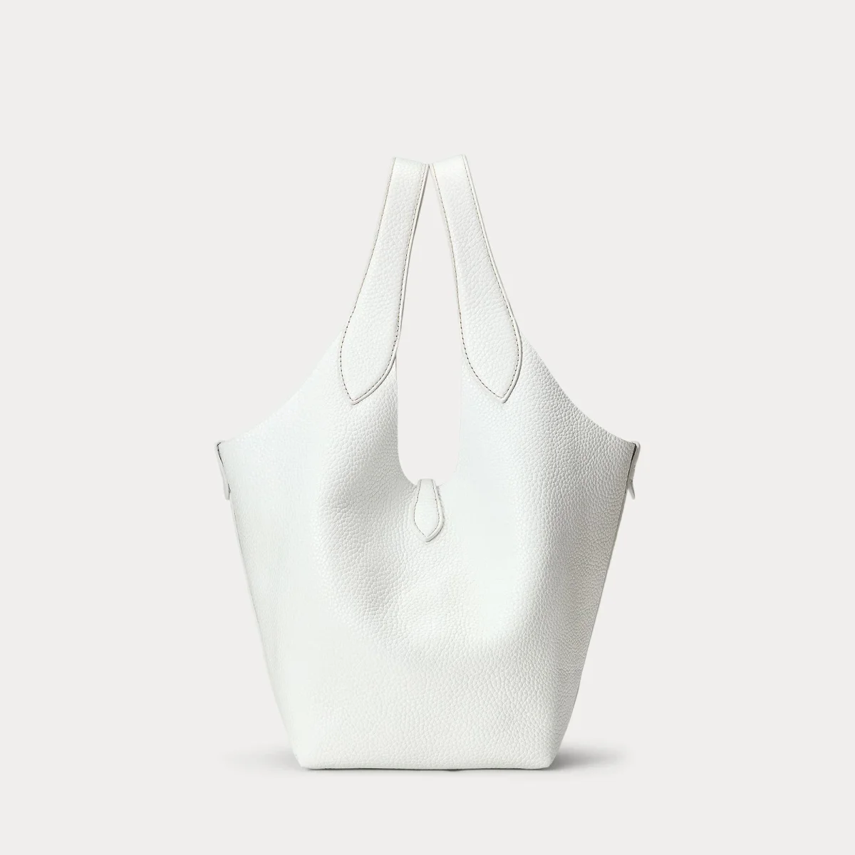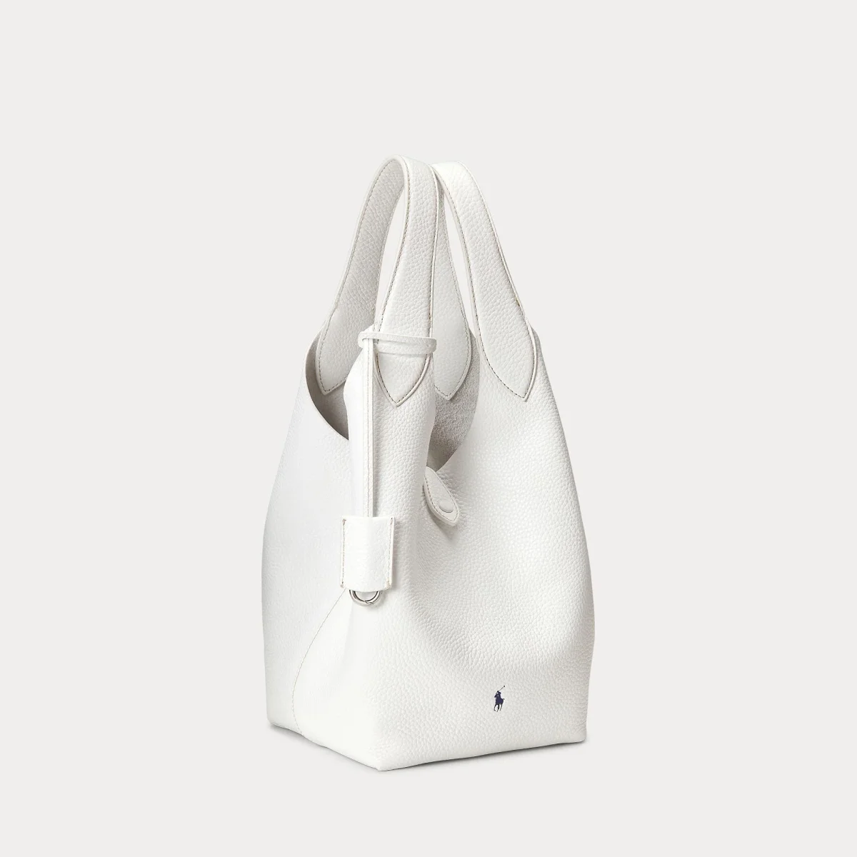 Borsa grande in pelle Ralph Lauren Polo realizzata in pelle pieno fiore con finitura groffata, doppio spallaccio, logo in contrasto, colore bianco