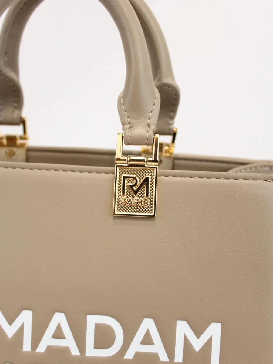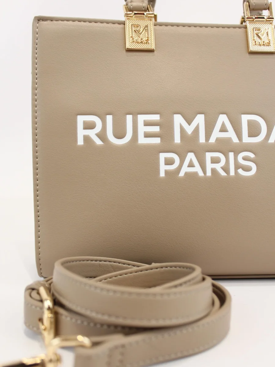 Borsa iconique mini tote Rue Madam, modello in similpelle effetto pelle liscia, doppio manico e tracolla regolabile, doppia tasca interna, logo in contrasto, colore beige