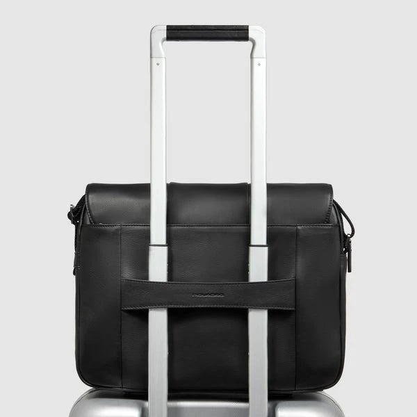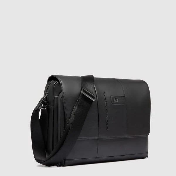 Borsa messenger Piquadro uomo, modello in pelle porta PC con tasca per AirPods, protezione anti urto e RFID, scompartimento intenro imbottito porta notebook da 14″ con scock absorber, colore nero