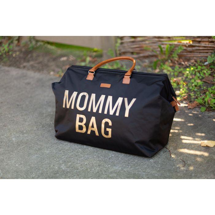 Mommy bag nero con logo in contrasto. scompartimento ampio interno, multi tasche interne, apertura con cerniera, tasca interna isotermica, tracolla per il trasporto e spazio per il bagaglio sul trolley, colore nero