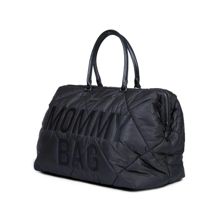 Mommy bag trapuntata nero con logo in contrasto. scompartimento ampio interno, multi tasche interne, apertura con cerniera, tasca interna isotermica, tracolla per il trasporto e spazio per il bagaglio sul trolley, colore nero