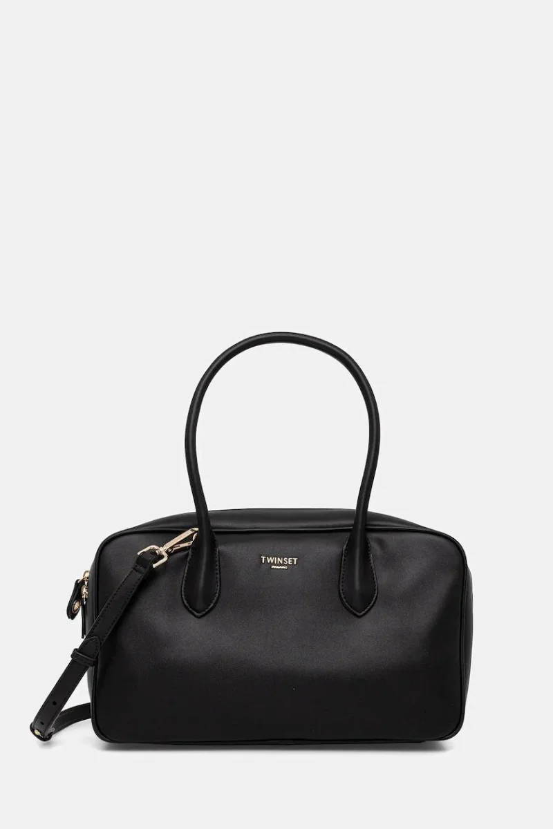 Borsa tote Twinset, con logo in contrasto oro, doppio manico, tracolla e chiusura con zip
