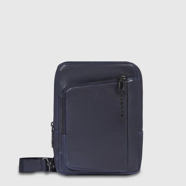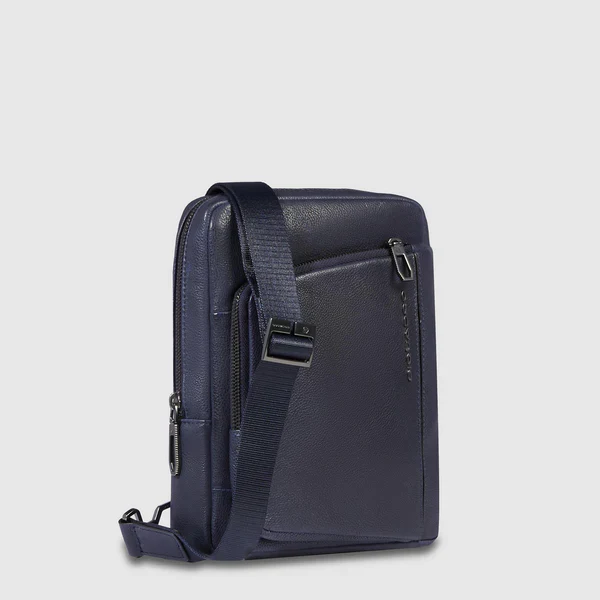 Borsello uomo Piquadro, modello a tracolla con scomparitmento interno e porta Ipad mini con tasca per connequ, protezione anti frode RFID, colore blu