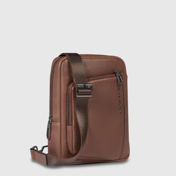 Borsello uomo Piquadro, modello a tracolla con scomparitmento interno e porta Ipad mini con tasca per connequ, protezione anti frode RFID, colore marrone